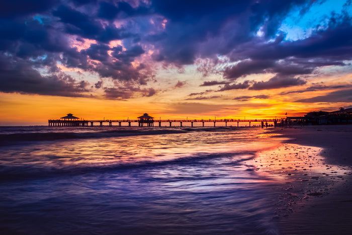 Sunset beach reflections